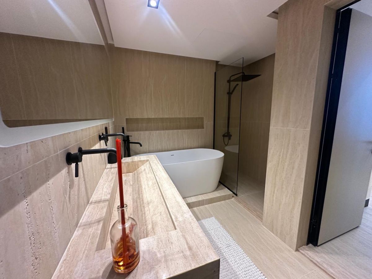 • Защищаем её от главных врагов в Дубае — возможных протечек и влаги. Для этого делаем усиленную гидроизоляцию пола и стен в душевой зоне.