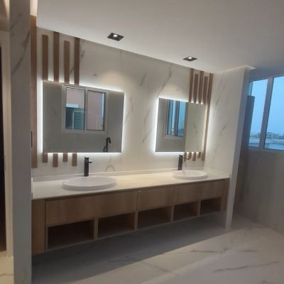 Ванные комнаты под ключ в Дубае — это создание статусных интерьеров от дизайн-проекта в стилях contemporary или modern arabic до капитального ремонта и изготовления мебели из влагостойких материалов. Мы реализуем полный цикл: от усиленной гидроизоляции и установки премиальной сантехники (Gessi, Hansgrohe) до монтажа встроенных гарнитуров и популярных здесь панорамных душевых кабин с подсветкой. Готовое решение, подчеркивающее роскошь и адаптированное к климату ОАЭ.
