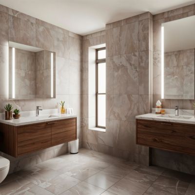 1. Слой первый: Дизайн и планирование. Это ответ на вопрос «Что мы хотим получить?». Вместе с вами мы определяем стиль (строгий современный contemporary, элегантный modern arabic или уютный classic), рисуем планировку, где каждому предмету — умывальнику, душевой, стиральной машине — найдено удобное место. Мы создаём 3D-модель, чтобы вы «прошли» по будущей ванной ещё до начала работ. Это основа, которая предотвращает ошибки и переделки.