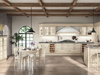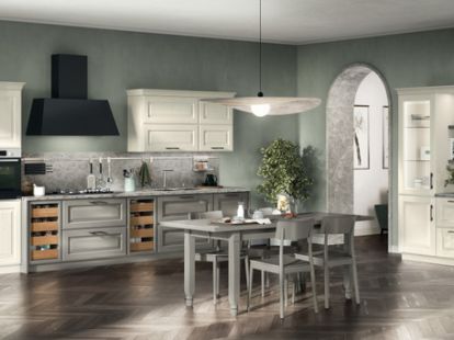 Такая кухня будет уместна в разных типах недвижимости. В просторных квартирах в новостройках и жилых комплексах бизнес-класса она станет композиционным центром открытой гостиной-студии. В загородном доме или коттедже классическая архитектура кухни найдет естественное продолжение в интерьере с высокими потолками и большими окнами. Для объектов премиум-сегмента предусмотрены декоративные решения с золотом и серебром, капителями и филенчатыми фасадами — они придают пространству дворцовый оттенок, оставаясь при этом сдержанными.