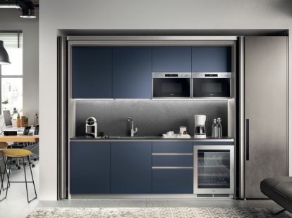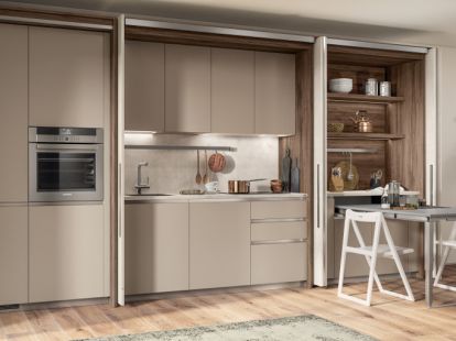 — Квартиры с открытой планировкой. Кухня не конкурирует с гостиной за внимание. Когда закрыта — это просто стена. Никаких кастрюль на виду, никаких баночек. Гости пришли — вы закрыли дверцы, и вы в гостиной, а не на кухне.