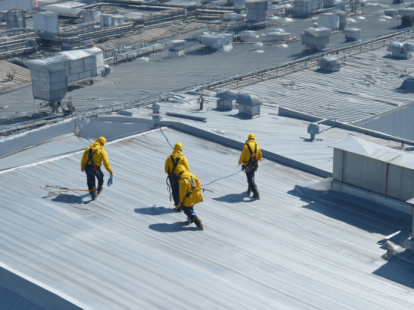 Жидкая резина (PU coating) — напыление полимерного слоя, который создает бесшовное водонепроницаемое покрытие. Идеально для сложных крыш с множеством примыканий и проходок. Битумная мембрана (torch-on) — наплавляемый рулонный материал для бетонных оснований. Холодное нанесение без открытого огня — безопасно для жилых комплексов Дубая. Ремонт плоских бетонных крыш включает герметизацию трещин, восстановление гидроизоляции и устранение застоя воды.